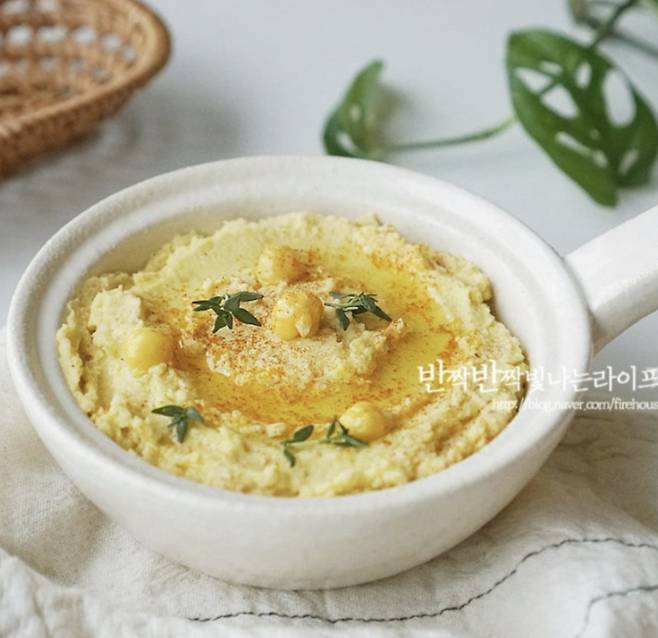 후무스도 좋은 선택이 될 수 있어요. 콩을 불려 삶아주고 올리브오일과 참깨, 다진마늘, 레몬즙, 후추 등을 넣어 블렌더로 갈아서 샐러드나 빵 등과 함께 먹으면 매력넘치는 병아리콩 요리랍니다 :)