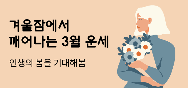이번 주 뱀띠는 인간관계에서는 운명의 만남을 예감케 하는 마음이 맞는 친구나 가치관이 맞는 사람과의 만남이 있습니다. 업무적으로나 사생활에서 파트너와 서로 의지하고 교류를 돈독히 함으로써 유대감과 신뢰를 쌓고 정신적인 아늑함을 느끼게 됩니다. 앞으로의 인생과 관련된 라이프스타일의 기반을 마련하는 주간이기도 합니다. 부드러운 인상을 주는 색상의 아이템을 지니는 것을 추천합니다. 이외에도 풍선과 비눗방울, 음악, 빙수 등이 운기를 북돋아 줍니다. 행운의 컬러는 화이트와 라벤더색입니다.