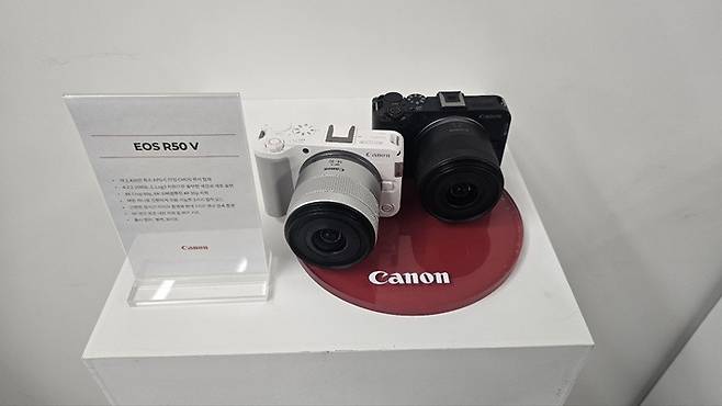 이날 행사에서는 영상특화 기능을 탑재해 1인 미디어, 쇼츠 콘텐츠에 최적화된 촬영경험을 제공하는 'V시리즈(파워샷 V10, 파워샷 V1, 이오스 R50 V)'가 전시됐다.