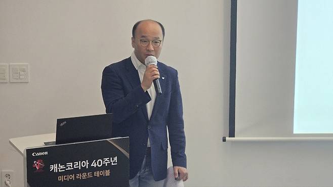 박정우 캐논코리아 대표이사(사장)가 15일 서울 강남구 캐논플렉스에서 열린 미디어 라운드테이블에서 영상 메시지를 통해 이같이 말했다.