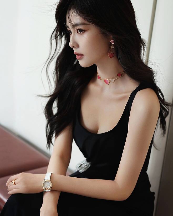 세련된 블랙 드레스로 우아한 매력을 선보인 백록
