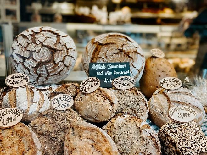 독일에 머무는 동안 몇 번의 이사를 했지만 어느 집에서든 걸어서 갈 수 있는 거리에 빵집이 있었다. 새벽 6시면 이미 진열장에 가득 들어찬 빵들이 손님을 기다린다. 우리는 종종 일어나자마자 옷을 대충 걸쳐 입고 눈을 비비며 투박하지만 맛있는 빵을 사 와서 아침밥 대신 ‘아침빵’을 먹었다. 겉에 곡물과 씨앗이 붙은 묵직하고 거친 빵은 버터를 살짝 바르면 구수한 맛이 일품이고, 동그란 브뢰첸(Brötchen)은 반으로 갈라 치즈나 햄을 끼우면 든든한 한 끼로 충분하다. 가볍게 허기를 달래고 싶을 땐 반질거리는 표면을 가진 브레첼에 골파를 쫑쫑 썰어 넣은 크림치즈를 발라 먹으면 된다. 한국의 아침 빵은 독일과는 사뭇 다르다. 동네 프랜차이즈 빵집에서 파는 것은 달고 푹신해 영 터프한 맛이 없고, 독일식 빵을 파는 빵집은 어딘가 너무 힙해서 편하게 앉아서 즐기기가 부담스럽다. 지인의 소개로 알게 된 395빵집은 차분한 공간에 박마이스터린(Backmeisterin, 독일어로 여성 제빵 장인을 가리키는 말)의 구수한 독일 빵을 먹을 수 있는 곳이다. 카이저젬멜이나 호밀빵 사이에 햄과 치즈, 납작하게 썬 채소가 촘촘히 들어간 야무진 즉석 샌드위치는 정말 독일에서 먹던 그 맛이다. 고소한 호두와 달콤한 살구가 든 호밀빵은 야금야금 뜯어먹기에 좋다. 무엇보다 395빵집은 “우리는 독일 빵을 파는 곳이야!”라고 요란 떨지 않고 당연하다는 듯 담담하게 독일 빵을 파는 곳이라 마음에 든다. 독일에 있는 독일 빵집처럼 말이다.