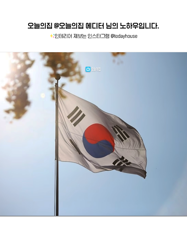 다가오는 광복절을 위해, 오늘은 태극기 건곤감리의 의미, 국기 다는 법, 그리고 보관과 폐기법까지 한 번에! 안내해 드리려고 해요. 앞으로는 국경일 하루만이라도, 태극기를 게양하며 오늘이 무슨 날인지를 생각해 보려고 합니다. 그럼 함께 태극기 달러 가볼까요?