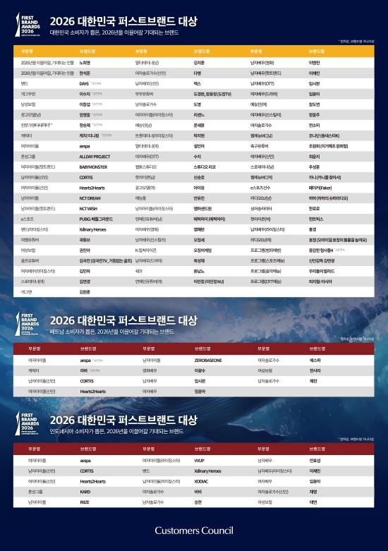 이후 지난 11월 3일부터 16일까지 국내, 베트남, 인도네시아 현지 소비자 조사를 거쳐 수상자를 최종 선정했다. 수상 브랜드는 '2026년을 이끌어갈, 기대되는 브랜드 OOO'라는 타이틀을 받는다.