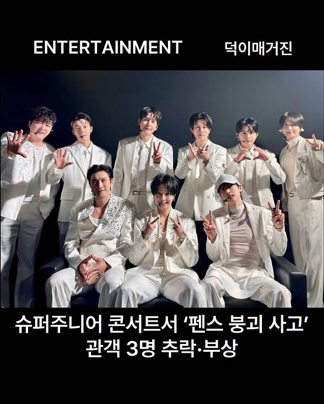 그룹 슈퍼주니어의 데뷔 20주년 기념 공연에서 안전사고가 발생해 관객이 부상을 입는 일이 벌어졌습니다. 이번 사고는 4월 5일 서울 KSPO DOME에서 열린 월드투어 ‘SUPER SHOW 10’ 공연 도중 발생했으며, 공연 주최사인 SM엔터테인먼트는 공식 입장을 통해 책임을 인정하고 사과했습니다.