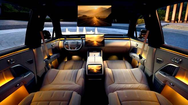 운전석 전면에는 35인치 헤드업 디스플레이가 펼쳐지고, 중앙 17.2인치 디스플레이, 2열 전용 17.3인치 폴다운 스크린, 그리고 23개 스피커 오디오 시스템과 미니 냉장고까지 전 트림에 기본 탑재된다.