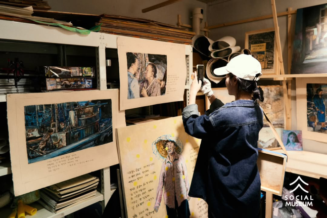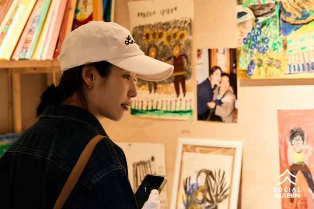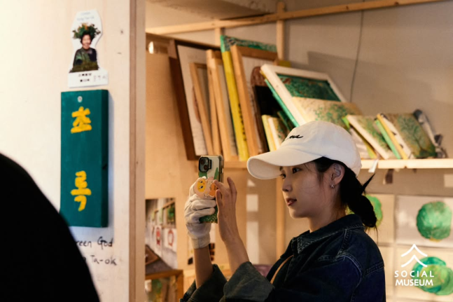 아이유가 최근 제주도를 찾아 해녀 할망들이 직접 그린 그림들을 전시한 공간에 방문했어요.