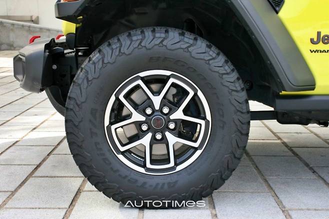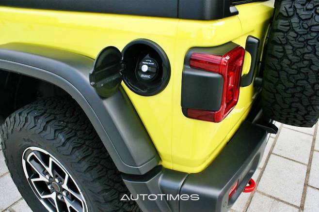 후면부는 상품성 개선 이전과 큰 차이는 없다. 후미등의 경우도 브레이크등과 방향지시등 모두 LED다. 루비콘 트림이라 후미 토우 후크 역시 붉은색 페인팅처리가 됐다. 스페이어 타이어도 풀사이즈 타이어가 적용되지만 커버는 삭제됐고 후방카메라는 타이어 고정 볼트 가운데 자리 잡고 있어 위치에 신경을 쓴 흔적을 보인다.