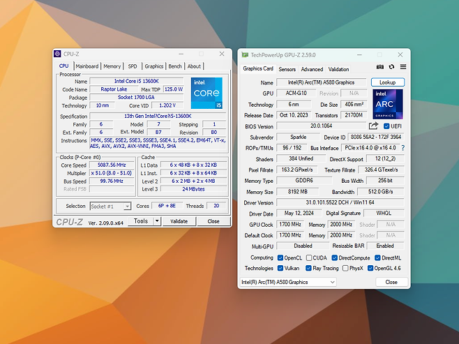 24개의 Xe코어와 384개 Xe 벡터 엔진 그리고 24개 하드웨어 레이트레이싱 유닛이 탑재된 인텔 ARC A580 칩셋을 사용하였으며, 부스트 클럭은 2000MHz 메모리는 GDDR6 8GB(256-Bit)를 탑재하고 있습니다. 또한 A770과 마찬가지로 AV1 하드웨어 인코딩과 디코딩과 인코딩을 모두 지원하고 있습니다.
