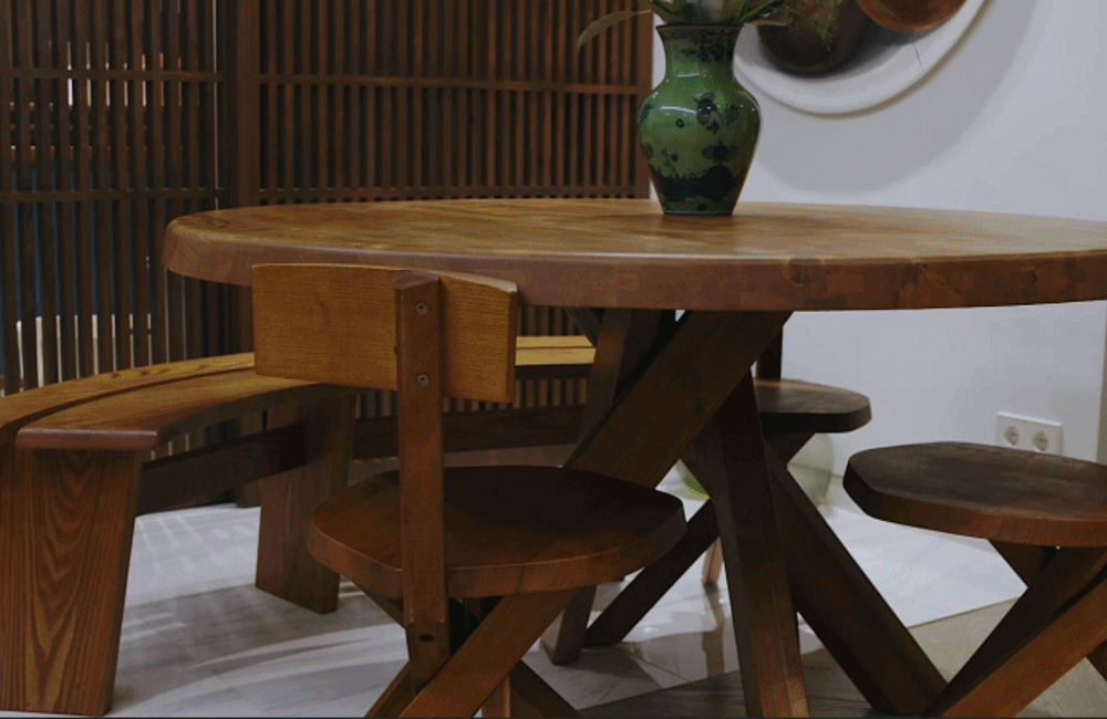 인테리어의 성패를 좌우하는 것은 톤 앤 매너라고 생각한다. 그래서 중앙에 있는 피에르 샤포 빈티지 테이블을 중심으로 아일랜드 상판, 붙박이 가구, 오븐까지 톤을 맞춰 제작했다. 테이블 위의 그림은 박성민 작가의 작품이다. 주방의 분위기를 밝혀주는 일등공신이다.