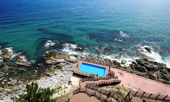 🏖 계단 따라 내려가면 물놀이도 가능!망양휴게소 자체에 대형 해수욕 시설은 없지만, 아래쪽 계단을 따라 내려가면 바다와 맞닿은 작은 해변에서 산책, 스노클링, 가벼운 물놀이가 가능합니다. 맑고 푸른 바닷물 덕분에 바다 속이 훤히 보여 여름에 상상만으로도 시원해집니다.