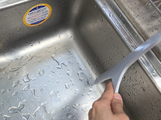 스퀴즈를 사용해서 물기를 제거하고 있었는데 모서리 부분은 제대로 물기를 제거하기가 어려웠는데요