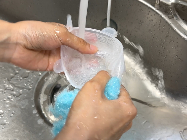 게다가 오염되었을 때 물로 세척하여 다시 사용이 가능해서 랩 사용이 줄더라고요