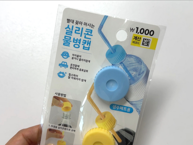 그럴 때 실리콘 캡을 사용하시는 물병에 끼워서 빨대를 꽂을 수 있고 차 안이나 아이들 음료병에도 사용이 가능해서 아주 편하더라고요