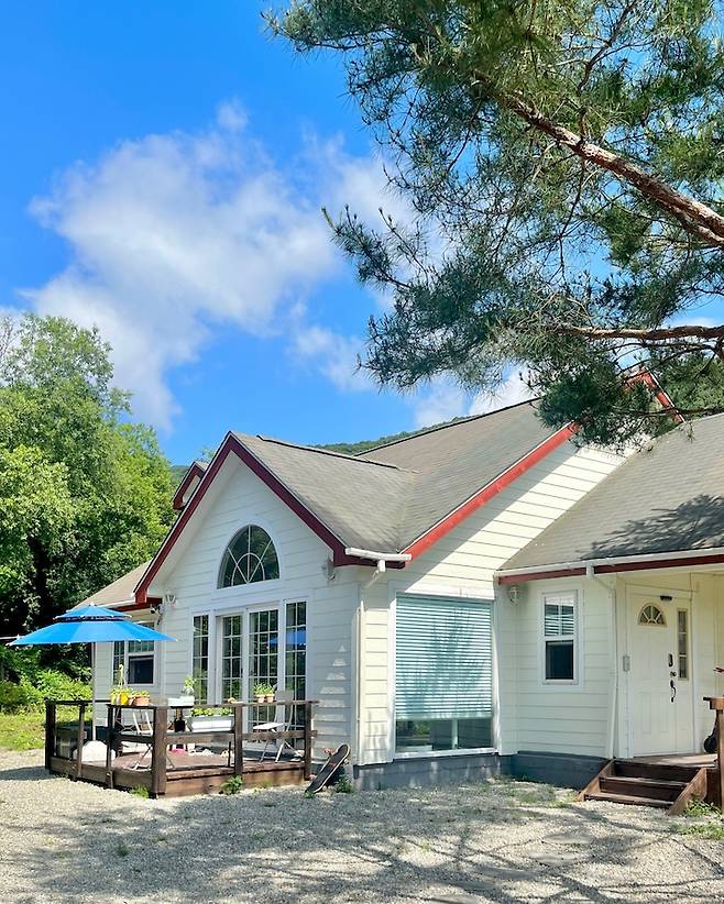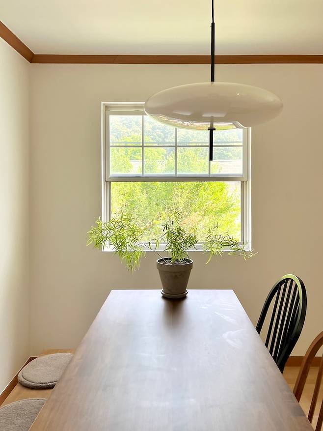 전원주택이다 보니 사방에 창문이 있어서 시시각각 변화하는 날씨와 계절을 감상하는 재미가 있어요. 주변이 산으로 둘러 쌓여 있어 어느 창문에서 보더라도 초록 초록한 풍경이 펼쳐진답니다.