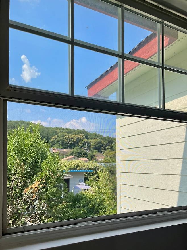 노트북 모니터만 쳐다보다가 한 번씩 창 밖을 보는 순간 눈이 정화되는 느낌이에요 ㅎㅎ 그래서 아직까지 커튼이나 블라인드를 달지 않고 있답니다.