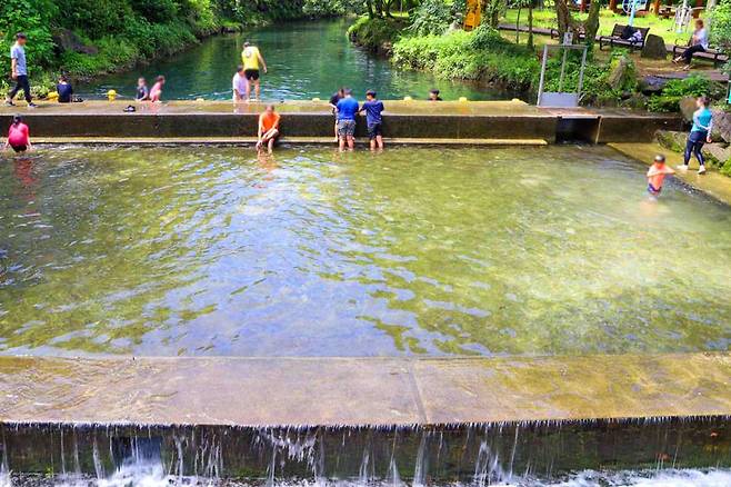 삼양해수욕장에서 도보 5분이면 만날 수 있는 샛도리물은 바다와 이어지는 곳으로 용천수가 흘러 얼음장처럼 온도가 낮은 곳입니다.