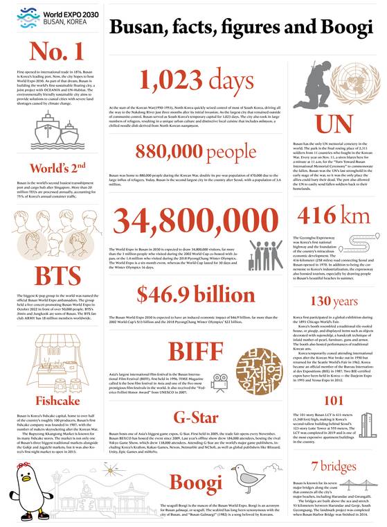 The Busan World Expo 2030 is expected to have an induced economic impact of $46.9 billion, far more than the 2002 World Cup’s $13 billion and the 2018 PyeongChang Winter Olympics’ $22 billion.