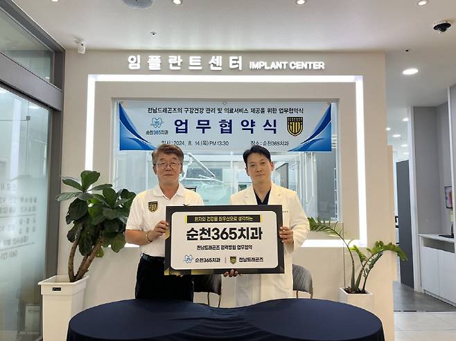 전남 드래곤즈가 순천365치과와 손잡고 구단의 의료지원 체계 강화와 지역 상생에 나섰다.