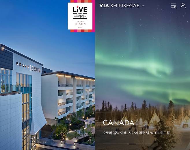 신세계백화점의 여행 큐레이션 플랫폼 ‘비아신세계’에서는 쓱데이 특별 기획전을 열고 약 20년 만의 오로라 초극대기를 맞아 캐나다 오로라 여행을 선보인다. 비즈니스 항공편, 랜드마크 호텔 숙박 등이 포함된 프리미엄 상품을 1천만원대에 판매한다.
