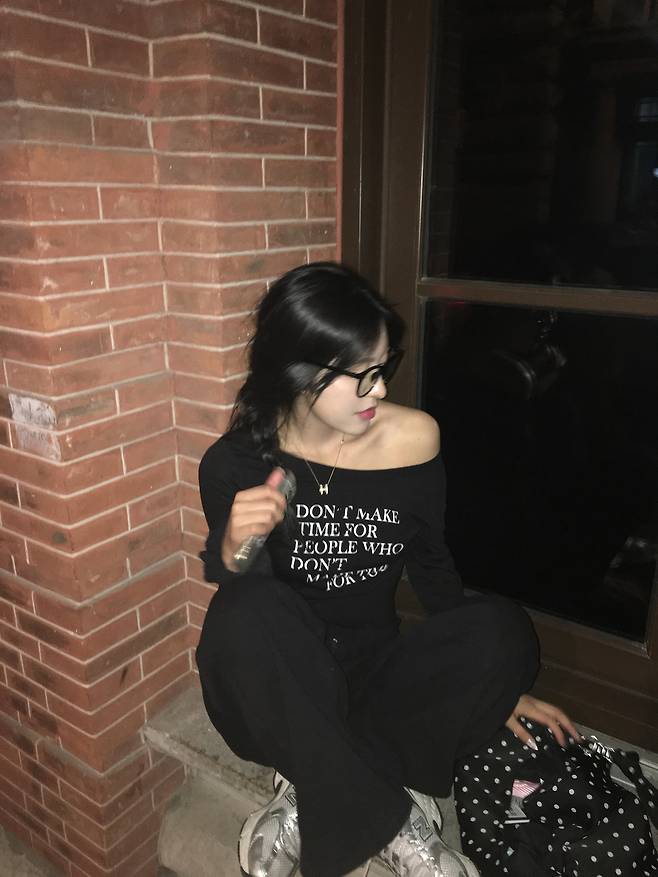 마무리 못한 화장을 가려주는 데에는 뿔테안경만한 게 없죠.