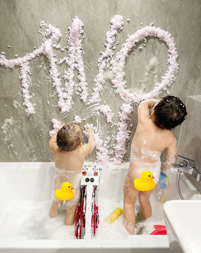 처음에는 욕조를 없앨 계획이었는데, 아이들한테 욕조가 필요할 것 같아 추가했어요. 욕조에서 너무나도 잘 노는 두 아이를 보며 늘 만족하고 있답니다.