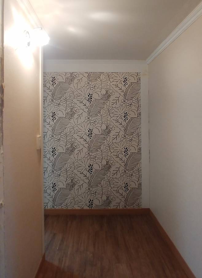 집에서 가장 작은 방이에요. 작은방은 이전부터 확장 공사가 되어있어 구조 변경 없이 손상된 벽면의 합판 교체와 도배/마루 시공으로 마무리하였어요.