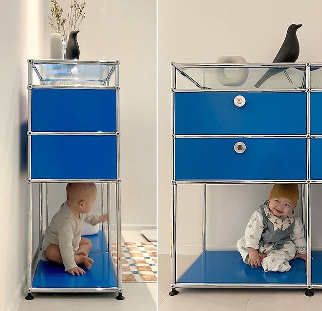 둘째 아이는 종종 가구 밑에 들어가 숨바꼭질 놀이를 하기도 해요.