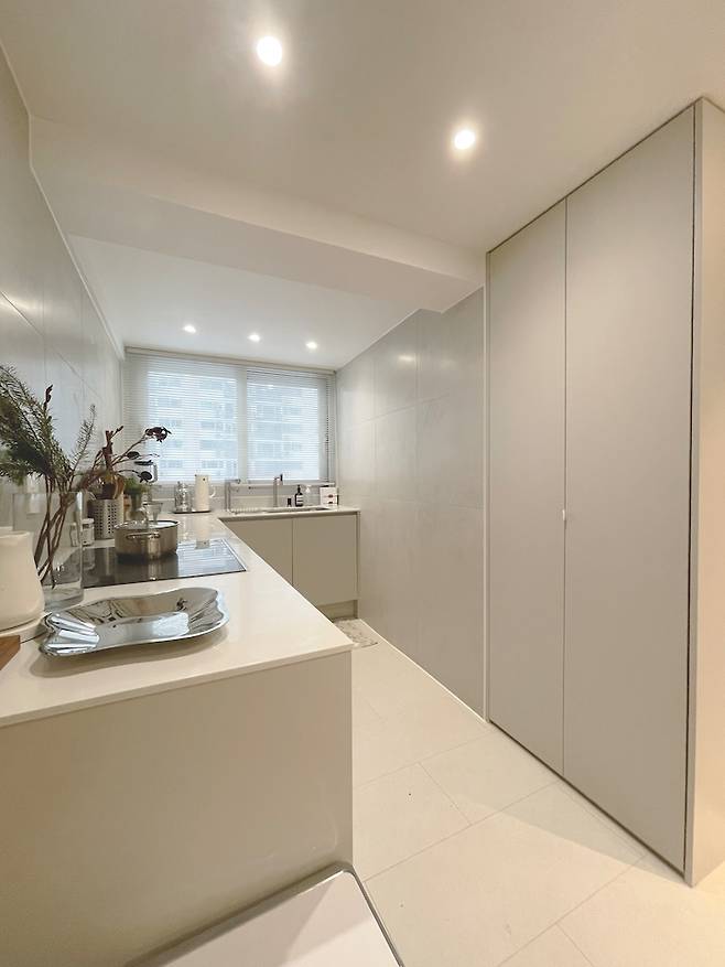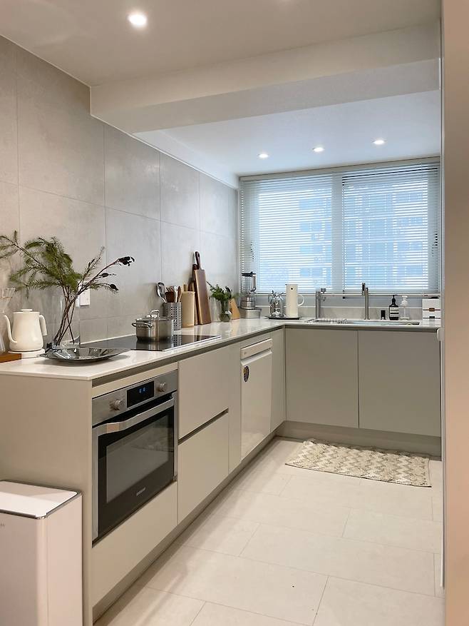 'ㄱ' 자의 긴 구조는 조리 공간도 확보되어 주방 본연의 역할을 제대로 하고 있는 것 같아요.