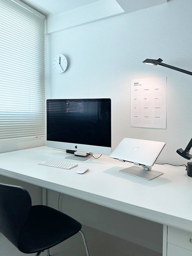아직 미처 완성되지 못한 공간이지만, 최대한 깔끔하게 블랙 앤 화이트로 꾸몄어요. 이대로 잘 유지하면서 사용할 수 있었으면 좋겠네요.