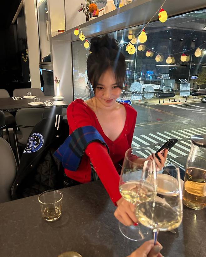 그녀의 손끝에 들린 와인 잔은 전체적인 룩과 어우러지며 우아한 무드를 더한다. 비비는 이 순간에도 자신만의 스타일을 잃지 않고, 패션과 분위기의 완벽한 조화를 이뤄냈다. 이러한 스타일링은 일상에서도 충분히 따라 하기 좋은 룩으로, 과감하면서도 세련된 느낌을 준다.
