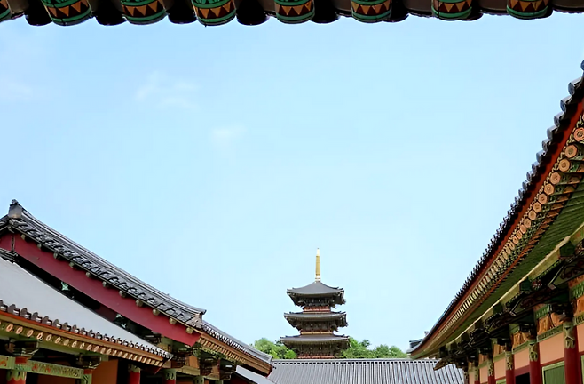 조금 더 걸음을 옮기면 왕실 사찰인 능사와 정문 대통문, 그리고 이 단지의 상징적인 건축물 오층석탑이 나타납니다. 이 탑은 실제 능산리 고분군에서 출토된 유물을 바탕으로 실물 크기로 복원된 것으로, 백제 불교 건축의 정제된 아름다움을 오롯이 보여주죠.