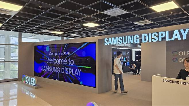 올해 처음 컴퓨텍스에 참가한 삼성디스플레이는 노트북·태블릿·모니터 등 다양한 IT 유기발광다이오드(OLED) 포트폴리오를 전시한 고객사 대상의 프라이빗(비공개) 부스를 꾸렸다.