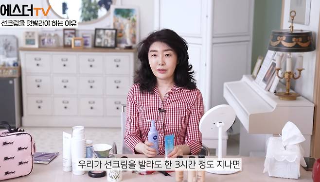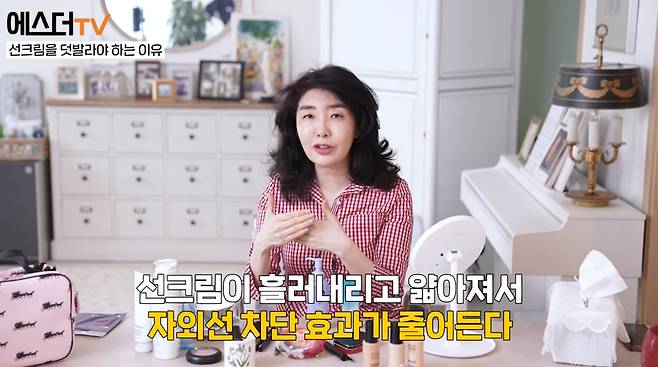 또한 여에스더는 "선크림을 바르고 야외 나가서 2,3시간 지나면 어떻게 할까요? 덧 발라야 한다"라며 "떡이 돼도 덧발라야 한다"라고 선크림의 중요성을 설명해 눈길을 끌었는데요.