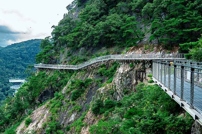 해발 200m 높이에 설치된 스카이워크는 길이 404m로, 아찔한 절벽 위를 걷는 듯한 짜릿함을 제공합니다.