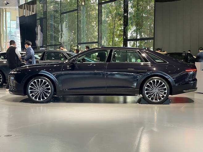 측면부는 전장과 휠베이스, 리어오버행을 늘려 훨씬 안정감 있는 비율을 가졌고, 동시에 현대차 플래그십 세단다운 위용을 뽐낸다. 또 3세대 플랫폼이 적용되면서 역대 그랜저 중 가장 큰 차체를 자랑한다.