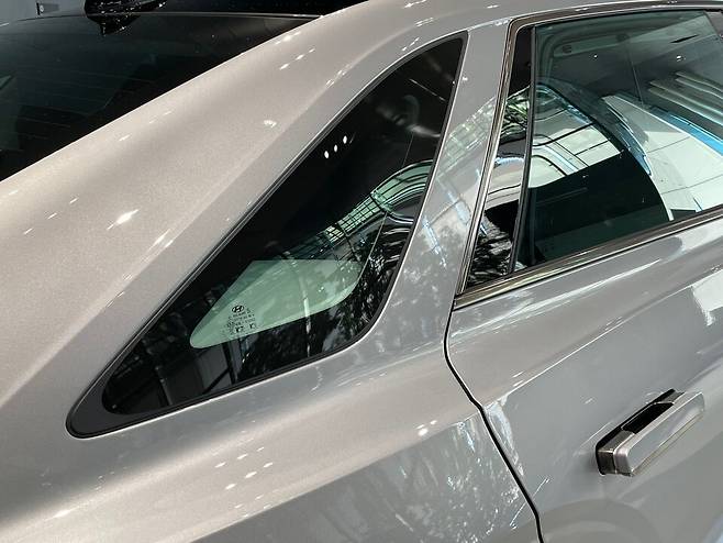 무엇보다 신형 그랜저의 측면은 윈도우라인이 가장 눈길을 끈다. 과거 '각그랜저'로 불렸던 1세대 그랜저의 디자인을 현대적으로 재해석해 오마주한 스타일링이 적용됐고, 그랜저XG의 프레임리스 도어도 채택한 것도 인상적이다. 프론트범퍼에서 측면 하단 로커패널을 지나 리어범퍼까지 연결되는 블랙 가니쉬 디테일도 1세대 그랜저에서 봤던 요소다.
