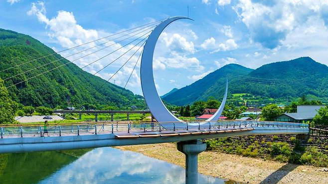 아우라지 여행의 정수는 물길 위를 가로지르는 4개의 보행교를 차례로 건너보는 독특한 체험에 있습니다.