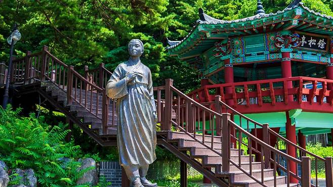 처녀상과 여송정에 서린 애틋한 전설과 봄날의 서정적인 풍경