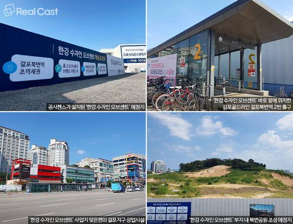 김포골드라인 걸포북변역 2번 출구로 나가면 서울·경기 광역버스가 지나는 버스 정류장과 함께 김포대로를 따라 길게 설치된 가림 벽이 나오는데 현재 공사가 한창 진행 중인 ‘한강 수자인 오브센트’입니다.