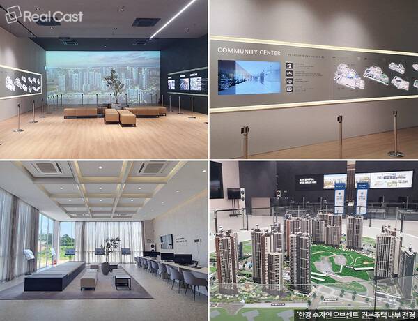 주택전시관 중앙에 단지 모형도를 두고 46개소에 달하는 커뮤니티 이미지를 시각화해 김포 최대 수준의 커뮤니티라는 점을 드러내면서, 커튼월 룩과 최상층 스카이라운지, 옥탑 크라운 조형물 등의 특화설계로 랜드마크라는 상징성까지 강조했는데요.