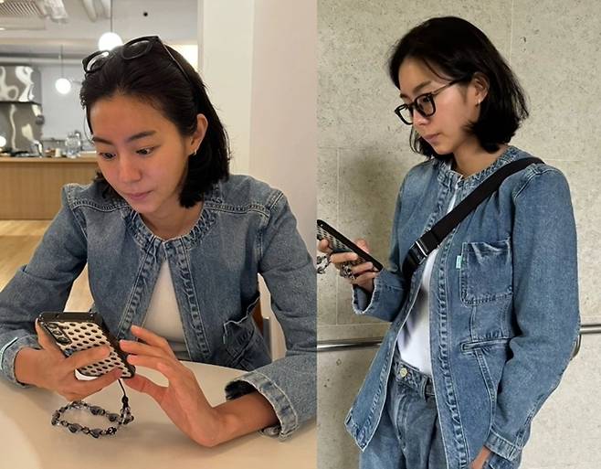 공개한 사진에서 유이는 단발 헤어 스타일에 뿔테 안경을 쓰고 데님 팬츠와 데님 재킷으로 힙하면서도 캐주얼한 긱시크 카페 외출룩을 선보였다.