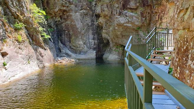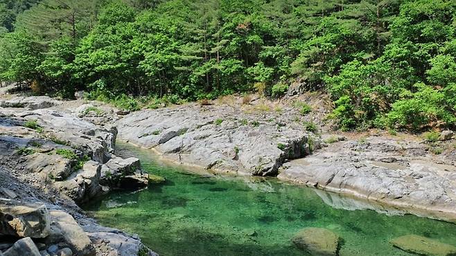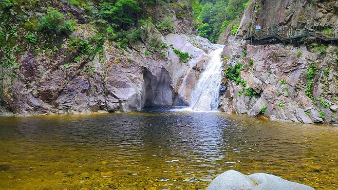 제1용소는 ‘용이 승천했다’는 전설이 전해지는 푸르고 깊은 물웅덩이다. 흔히 계곡물에 발을 담그면 느껴지는 그 강한 냉기가, 이곳에선 더없이 신선하고 고요하게 다가온다. 그늘 아래 앉아 물소리를 들으며 발을 담그는 그 순간, 여름이라는 계절조차 잠시 잊히는 듯하다.