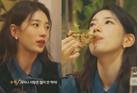 수지는 방송에서 피자를 먹으면서도 과자나 사탕을 많이 먹지 않는다고 밝혔다. 원래 단 음식을 좋아하지 않아 자연스럽게 피한다고 전했다. 딸기우유처럼 예외적인 음식만 가끔 먹는 수준이다. 촬영 중 당이 떨어질 때만 소량 섭취한다고 말했다.