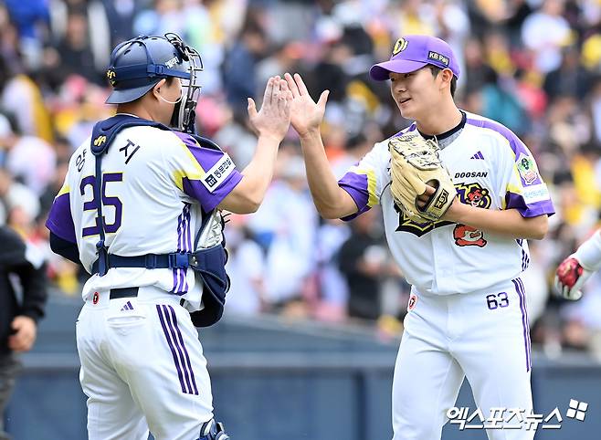 27일 수원 KT 위즈전을 앞두고 취재진과 만난 이 감독은 "이틀 전 김택연 선수가 정말 오랜만에 좋은 투구를 선보였다. 올 시즌 볼 비율이 많아져서 상대 타자들이 속구만 생각하고 들어가면 어려움을 겪을 수밖에 없다. 볼카운트를 초반에 어떻게 잡느냐가 관건이다. 구위에선 큰 문제가 없어 보인다"라고 전했다.