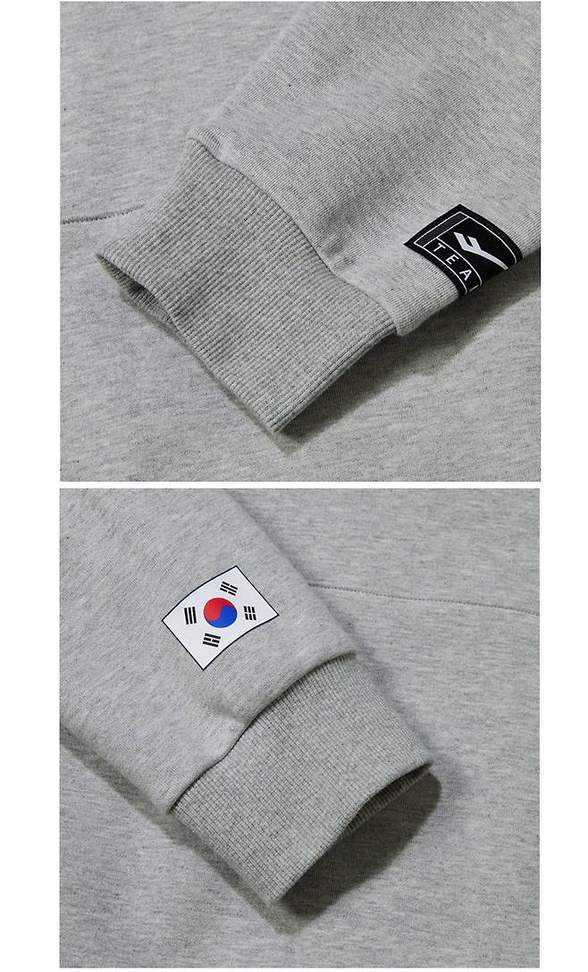 소매부분에 태극기 마크 포인트! 앞쪽에 캥거루 포켓 주머니! 촘촘한 시보리 처리로 편안하게 입을 수 있습니다!