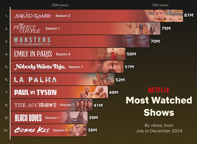 넷플릭스, 2024 하반기 시청 현황 공개 <오징어 게임> 시즌2, <흑백요리사> 등 흔들림 없는 K콘텐츠 열풍