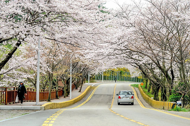 특징: 해안 절벽, 파도 소리, 벚꽃길