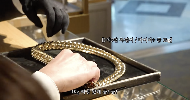 추성훈의 어머니 류은화 씨도 남다른 취향을 자랑했다. 시계보다 금목걸이에 관심을 보인 그는 “나라면 이걸 고를 것”이라며 1kg이 넘는 순금 목걸이를 착용했다.