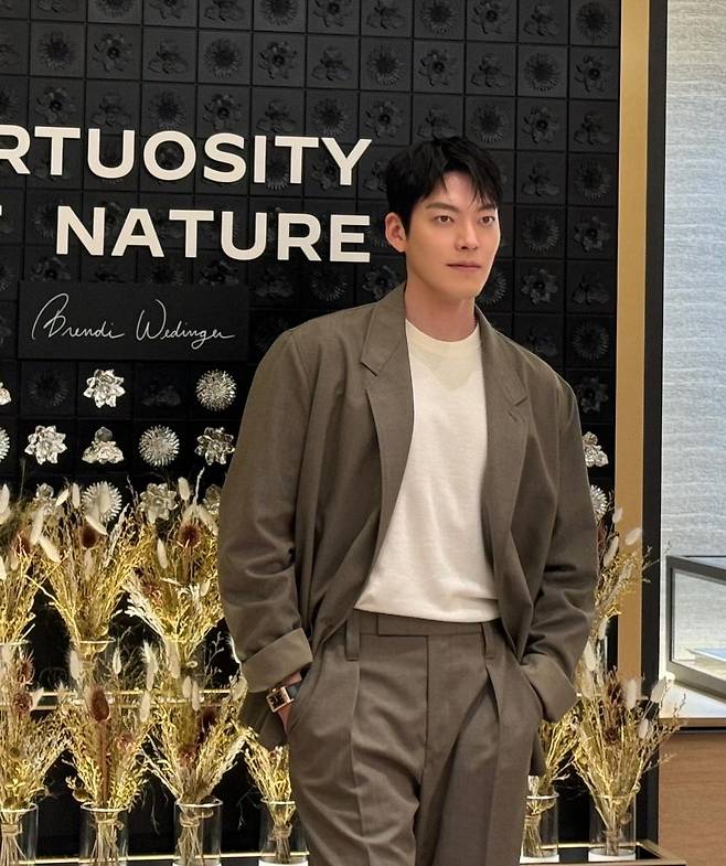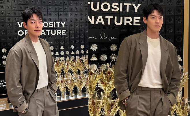 사진 속 김우빈은 흰티를 이너로 입고 베이지톤의 정장 셋업을 입고 캐주얼하면서도 완벽한 슈트핏을 자랑하며 패션을 선보였다.